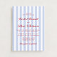 Esta invitación a una boda de rayas azules y rojas es una elección audaz y elegante para las parejas que quieren hacer una declaración. Con un diseño moderno de rayas y una tipografía elegante, esta invitación combina a la perfección el encanto clásico con el estilo contemporáneo. Una hermosa manera de invitar a sus seres queridos a su celebración especial.