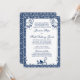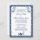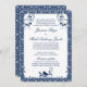 El texto de esta invitación de boda de estilo rococó arabesco o barroco, azul marino floral y esquinas redondeadas blancas es totalmente personalizable. Para cambiarlo, utilice la opción de personalización. Para realizar cambios más extensos en la invitación, incluidos cambios en el tipo de letra, el color de la fuente, el tamaño de la fuente o la ubicación del texto, utilice la opción personalizar. El diseño de esta invitación casera de estilo rococó barroco es ideal para un boda en primavera o verano. Aunque actualmente está adaptada a un boda, esta invitación también funcionaría bien para una variedad de otras ocasiones especiales. Tú decides. Todo lo que necesitas hacer es cambiar el texto. Cambie el aspecto probándolo en cualquiera de los otros tipos de papel. En algunos fundas esto cambiará el color de fondo. Esto también incluye la redacción tradicional de la invitación a la boda. Póngase en contacto con el diseñador Wasootch si desea que esta invitación tenga colores diferentes.