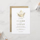 Esta elegante invitación a la boda tiene un fondo blanco con una hoja de arce en un falso Relieve metalizado de oro. En el reverso aparece un fondo de oro falso/falso. Personalízalo para tus necesidades. Puedes encontrar productos coincidentes en mi tienda.
