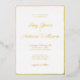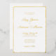 Esta invitación a bodas de lujo presenta un marco dorado delgado y delicado; su sencillez y sus detalles mínimos la convierten en elegante y sofisticada. Fondo blanco personalizable. Toda la tipografía en Relieve metalizado de oro real es personalizable para que personalizes tu invitación a la boda. Adaptarlo a su día especial, haciéndolo único.