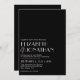 Un diseño minimalista moderno para tus invitaciones nupciales. Esta elegante tarjeta negra presenta una moderna tipografía blanca. Los acentos de Rubor le dan un toque de color. El lado inverso tiene sus iniciales en blanco con una sonda.