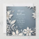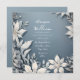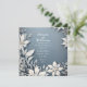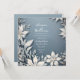 Invitación de boda cuadrada mágica de invierno maravillosa con flores blancas de invierno crujientes contra un degradado fondo azul.