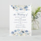 Disfrute del encanto de su día especial con nuestro Boho French Blue Wildflower Meadow Wedding Invite. Esta encantadora invitación incluye flores silvestres acuáticas que enmarcan delicadamente la parte superior e inferior del diseño, con un impresionante guión boho y elegantes combinaciones de fuentes para los detalles del evento. En la parte de atrás, un exuberante ramo de flores azules acentuado por una mariposa caprichosa, crea un bonito toque para los clientes. Perfecto para la moda boho, el jardín o los bodas de temática rústica, esta invitación le da un tono romántico y atemporal a su celebración. Hay un archivo imprimible disponible.