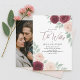 Anuncie su día especial con esta elegante invitación nupcial que incluye románticos rosas de color burdeos. Perfecto para un boda de primavera o verano, este diseño combina escritura atemporal con tipos de letra serif clásicos para un aspecto sofisticado. Ideal para bodas en el jardín, ceremonias formales o temáticas de inspiración vintage. Personalizar con sus nombres, fecha, lugar, código QR y más. Impreso en papel premium y totalmente editable para adaptarse a tu estilo.