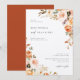Arreglos florales de otoño, invitación a la boda. Plantilla de diseño de tipografía moderna y sencilla. La parte posterior de la tarjeta muestra la coordinación del color naranja de terracota sólida.