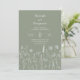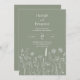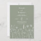 Un minimalista fondo verde sabio con flores silvestres de líneas blancas, perfecto para elegantes invitaciones de boda modernas.