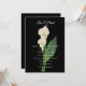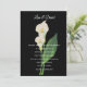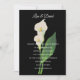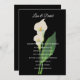 Esta romántica invitación a una boda clásica se muestra en un color de fondo negro con una hermosa impresión de Cala Lily y con un diseño escrito formal y texto impreso en forma estándar con un texto de escritura que resalta los nombres de la novia y de Groom. Personalizar esta invitación de boda haciendo clic en el botón personalizar, mira a la derecha para encontrar los cuadros de texto, cambia el texto en los cuadros apropiados para añadir su información.