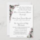 El diseño elegante presenta una imagen magnífica y realista de flores en cascada, incluyendo rosas rosas rosas rosas y hortensias blancas como un borde hacia las esquinas superior izquierda e inferior derecha. Siguiendo el formato tradicional para un boda católico, el texto se muestra en un elegante tipo de letra de color plateado. El reverso muestra la imagen de una cruz de color plateado con anillos bodas unidos. Las iniciales de Bride y Groom se muestran a ambos lados de la cruz. El texto del personalizable se muestra encima en una fuente Nuptial elegante. Diseñado para coordinar con la "Suite Boda Católica Floral Rosa y Blanca".