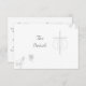 El diseño de la parte delantera incluye la cabecera de personalizable que se muestra junto a la imagen de una cruz con anillos bodas unidos en el centro. Las esquinas superior derecha e inferior izquierda presentan la imagen de las rocas. En la esquina inferior izquierda también se muestra la imagen de dos palomas, una en vuelo hacia la otra. Al revés se muestra la información de recepción y alojamiento, así como la información del registro de bodas. Si prefiere no incluir la información del registro de su boda, simplemente deje este área en blanco o reemplácelo por otro texto. ¡La decisión es tuya! Diseñado para coordinar con la "Suite Boda Católica Tradicional de Unidad Nupcial".