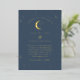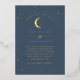 Una invitación a la boda con temática de luna celestial y estrella usando un verdadero Relieve metalizado de oro. Personalizar el color del patrón estrella, fondo, relleno de arco y elemento lunar!