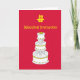 Un pastel de boda de múltiples niveles decorado con flores y remolinos dorados. La tarta está en un fondo rojo profundo y junto con el símbolo chino de doble felicidad dice 'Invitación a la boda'.