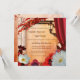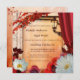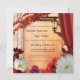 Una romántica invitación a la boda con flores de colores sobre un fondo clásico de estilo mediterráneo con una linterna y hojas de otoño. Esta invitación tiene tarjetas RSVP coincidentes. Hermoso para una boda en otoño.