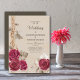 Esta invitación a la boda de la bonito incluye una vid de uva y hojas adornadas con rosas rojas rojas rojas en el lado izquierdo. En la parte inferior derecha se encuentra un ramo de rosa a juego. El texto es de color marrón gris en el lado derecho.Las imágenes y el texto se colocan en un fondo de color crema pálido. La parte trasera de la invitación es sólida, a juego con el marrón gris. Ideal para un boda floral en cualquier época del año, pero sobre todo en verano o otoño. Material gráfico/gráficos de WatercolorSeasons.etsy.com