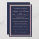 Un marco rosa rubor con texto de color similar sobre un fondo azul marino. Todo listo para que introduzca los detalles de su boda. ¡Enhorabuena!