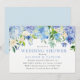 Nuestra invitación a la fiesta de boda con flores de lavanda y hortensias de acuarela azul pastel y hojas.