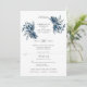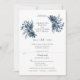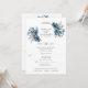 Flores de índigo azul que enmarcan los nombres de las parejas de una manera elegante y decorativa. La tarjeta de respuesta es una tarjeta de corte, con opciones de comida y con la dirección de retorno preimpresa. Una solución moderna, todo en una sola solución, para evitar que la tarjeta rsvp adjunta termine accidentalmente debajo de la nevera. En el reverso de la invitación hay una información opcional de Detalles. *El diseño puede ser personalizado con diferentes tipos de letra, colores o papel.