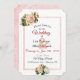Colores: Rosas rosas, corales, oro rosa y verde. Elegante invitación a la boda con todos los detalles: fecha y hora del boda, dirección junto con los detalles de la recepción y la cena. Agregue su propia información en el área personalizar.