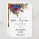 Esta invitación a la boda incluye hermosas flores rosas o magenta oscuras y azules en un estilo pastel de tiza. Es una invitación audaz y de aspecto moderno para celebrar su día especial.