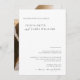 Captura tu historia de amor en nuestra minimalista invitación a la foto de un Boda. Con un diseño elegante y un toque personal, esta invitación muestra tu foto o foto favorita en la parte de atrás, añadiendo un elemento único y sentimental. Comparte tu alegría e invita a los seres queridos a presenciar tu día especial con esta bella y personalizada invitación fotográfica boda, que combina minimalismo moderno con recuerdos preciados. Ajustar fácilmente el color del texto y actualizar la mayoría de la redacción para satisfacer las necesidades de su evento.