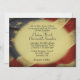 Diseño de la bandera estadounidense con problemas. Poner los nombres de la novia y de los novios en el frente, haciéndolo menos formal y en el otro lado la información habitual o habitual de los bodas. Esta invitación incluye un área para añadir el nombre y la ubicación de la recepción. Al hacer las invitaciones, compruebe tres veces la ortografía y las fechas.