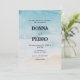 Establezca el ambiente para su celebración costera con esta rústica invitación a la boda acuática de la playa. Con sus suaves tonos oceánicos y sus texturas naturales, es ideal para bodas de veraneo, destino de playa o verano. Personaliza fácilmente tus nombres y detalles.