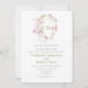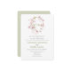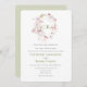 Una delicada cortina de color bonito de flores rosa pastel con una simple vegetación espumosa, escritura verde y tipografía. Color verde suave al revés de esta hermosa invitación para la perfecta y elegante invitación a la boda para su día especial.