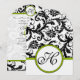 Vintage Patrones modernos de damasquinados florales en blanco y negro con invitaciones de Apple Green Trim Wedding. Perfecto para el barroco rococó, el renacimiento medieval, el Art Nouveau Art Deco, el Gatsby Roaring de los años 20, los Bodas victorianos o los elegantes locales temáticos de los Bodas de la granja.