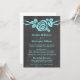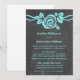 Invitación a la Boda de Chalkboard, dulce y bonito, en turquesa, con un único rosa encantador sobre una vid en un fondo de pizarra. Este elegante diseño es perfecto para un boda de primavera o verano. Fácil de personalizar, simplemente agregue los detalles de su boda en los campos de texto proporcionados. Haga clic en "Personalizar" para encontrar más opciones de personalización.