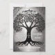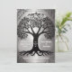 Invitación a la boda en el árbol de la vida con detalles en plata y negro.