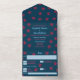 Esta invitación a la boda le da el fresco y fresco sentimiento de caída y le ahorra tiempo al ser una invitación todo en uno. Presenta un diseño japonés de hojas de arce sobre fondo marino. Esto también funcionaría para una pareja que ama Japón pero quiere mostrarlo de una manera sutil, ¡sobre todo si se casaban en otoño!