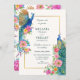 Invitación a la boda de aves pavo real con flores