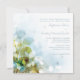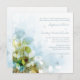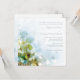 Esta elegante invitación de moda vintage de 5.25x5.25 cuadrado tiene un suave fondo azul desvanecido con algunos pájaros volando alrededor. A la izquierda, se ha diseñado un bonito diseño de hojas de follaje azul, blanco y verde oliva. En la parte superior derecha, usted puede fácilmente personalizar esto con la información de la ceremonia de su boda. Estos colores cálidos serían ideales para una boda de otoño o invierno, pero podrían ser usados en cualquier época del año.