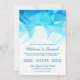 Sorprenda a sus huéspedes con esta fresca invitación a una boda geométrica con tipografía moderna y un elegante diseño geométrico triangular. Simplemente agregue los detalles de su evento en esta plantilla fácil de usar para convertirla en una invitación única. Voltea la tarjeta para mostrar un hermoso patrón de rayas azules y blancas en la parte posterior de la tarjeta.