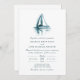 Personalizar esta romántica y elegante invitación a la boda vertical limpia y fresca, diseñada con una pintura original de color azul de un barco de vela, personalizable completo y como plantilla para su fácil personalización. Diseño elegante y fresco. También puede cambiar el estilo de esquina de esta invitación. *Pintura de acuarela: 2013 © Natasa Borenovic Matching RSVP Card, Bridal Shower Invite y Invitación a la cena de ensayo se pueden encontrar acá: