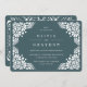 Elegantes invitaciones de bodas vintage en un verde bosque rico cuentan con un borde deco ornamentalmente detallado que evoca el aspecto de papel cortado en un estilo papel picado.