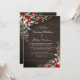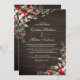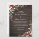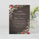 Este elegante volante romántico floral presenta hojas de color agua verde y bayas silvestres de color rojo brillante en el fondo de madera, texto moderno escrito a mano con cálidas luces de cuerda. El reverso de esta invitación es la madera con ramas verdes del bosque. Disfruten.