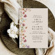Invitación a Boho Wildflowers Wedding. Esta elegante y elegante invitación a la boda incluye la preciosa acuarela pintada a mano Flores salvajes. Buscar elementos coincidentes en la colección Dreams de White Wildflower.