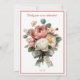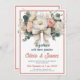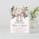 Esta romántica invitación a la boda incluye un delicado ramo floral de color ruidoso con rosas suaves, peonías y vegetación atadas con un elegante arco. Perfecto para las parejas que planean un boda clásico, de inspiración vintage, este diseño atemporal da un tono cálido y alegre para la celebración.