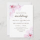 Estas elegantes invitaciones de boda minimalistas cuentan con delicadas flores de flores de cerezo color agua rosa sobre un fondo blanco.