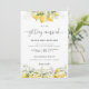 Invitación a la boda de limón de cítricos. Este elegante y elegante Wedding Shower Invitation presenta una preciosa coloración de agua pintada a mano con Lemon Blossom. Encontrar elementos coincidentes en la colección Floral de cítricos de limón y vegetación.