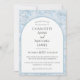 Hermoso color azul polvoriento color de agua floral abstracto y elegante fondo con magníficas fuentes con nombres de novios y novios y todo el lugar boda para sus invitados. Perfecto para cualquier boda de temporada. 100% de satisfacción del cliente con Zazzle cada día!