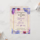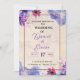 Esta invitación a la boda tiene un fondo texturado con un borde morado y dorado. Decorado con vivos acuarelas en tonos violeta, rosa y azul, desprende un ambiente artístico y romántico. Perfecto para una elegante celebración de bodas.