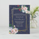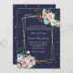 Impresionante invitación a bodas hecha en azul marino, con gráficos de un área de texto con marcos de oro doble sesgo decorada con flores pastel y puntos de confeti dorado, alrededor del exterior. Personalice el texto para adaptarlo a sus necesidades bodas. Hay productos que coinciden.