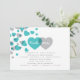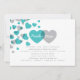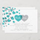 Un diseño de invitación audaz y moderna para una pareja no tradicional. La invitación está adornada con un patrón de corazones en color turquesa y gris brillante. En el reverso se incluye espacio para texto adicional o una dirección de sitio web boda.