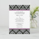 Moda y moda, personalizable completo y invitación personalizada a la boda en un monograma damasco blanco y negro. Deja que tu estilo brille en estas invitaciones. Coincidir guarda las tarjetas de fecha y los imanes están disponibles en esta tienda.