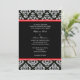 Moda y moda, personalizable completo y invitación personalizada a la boda en un monograma damasco blanco y negro. Deja que tu estilo brille en estas invitaciones. Coincidir guarda las tarjetas de fecha y los imanes están disponibles en esta tienda.
