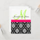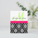Hermoso logotipo de boda en monograma con nombres verdes iniciales y negros en un elegante tipo de letra, bandas o bandas de color rosa caliente añaden a este encantador patrón de damasco blanco y negro floral una invitación nupcial única en la que sus invitados le van a complementar. Este diseño es sencillo pero elegante y, como utiliza su monograma inicial, será de un tipo. Diseño de diseño de la invitación a la boda por Elke Clarke ©2010. Gráficos con licencia. Personalizar con la información y los colores de su boda. Necesita ayuda para crear un paquete boda con elementos coincidentes como tarjetas RSVP anne de recepción, póngase en contacto con luxuryweddinginvitations@gmail.com