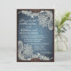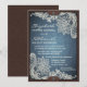 Esta invitación casera rústica a la moda de denim, encaje y cuero presenta un fondo de cuero con denim y delicado gráfico de encaje de marfil. También hay aletas de cuero con remaches. Si quieres un ambiente rústico combinado con una moda y un aspecto elegante, esto seguramente marcará el ambiente. Usted puede fácilmente personalizar esto en línea. :: ENVELOPES INCLUIDOS: