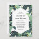 Glamorosas hojas de plátano adornan esta moderna invitación a la boda. Un elemento geométrico de moda y un frondoso follaje tropical se prestan a un ambiente de diseño. Introduzca nuestra tienda para coordinar artículos: