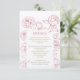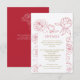Las peonías rojas bordean la tipografía elegante de esta suite de invitados a la boda. Puede personalizar del texto para su evento.
